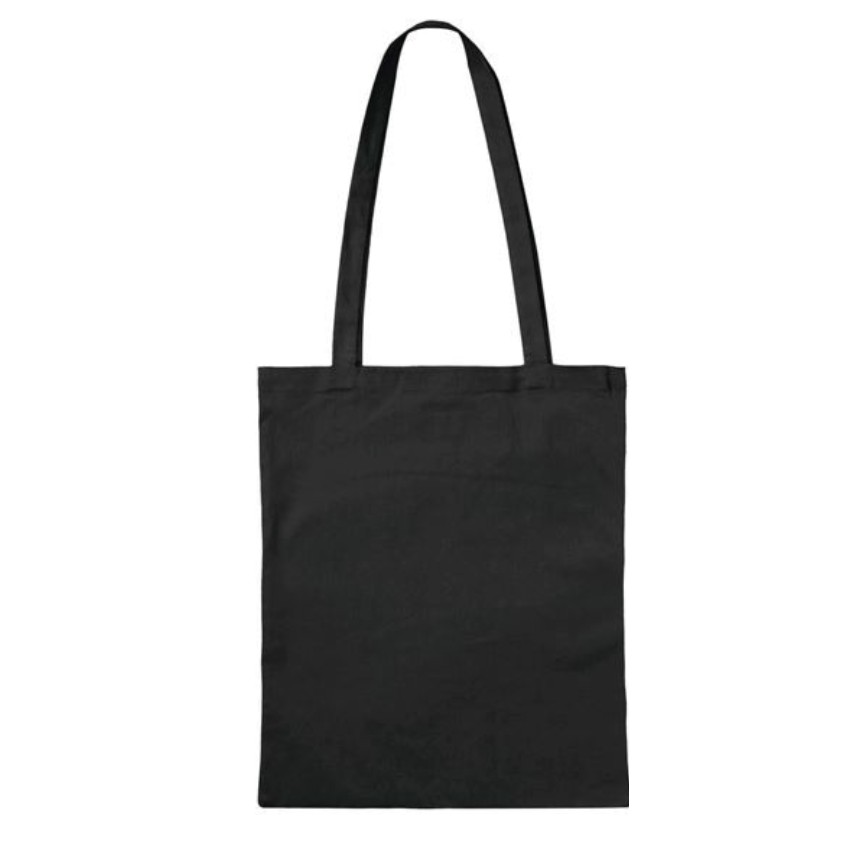100% Algodón 140 g. tamaño 41 x 37 cm, asas largas, certificación Fairtrade (Comercio Justo)