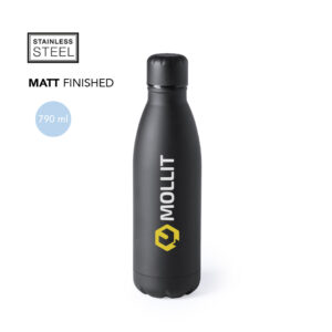 Acero inoxidable acabado mate, de 790 ml, tapón de seguridad de rosca, en negro