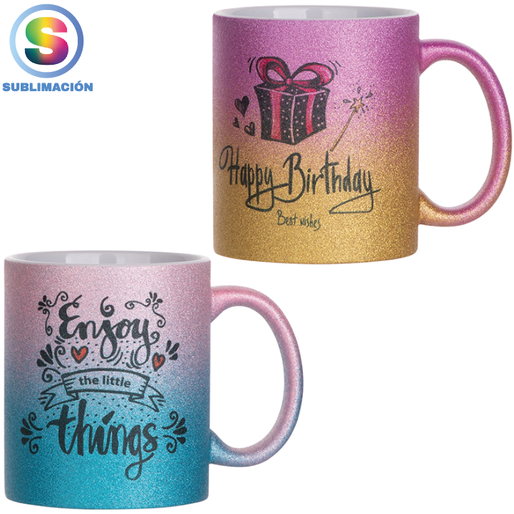 Cerámica escarchada, de 11 oz, color rosa/dorado y azul/rosa, para sublimación