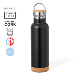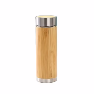 Acero en su interior y exterior en bambú, doble pared, de 500 ml, dosificador y abrefácil.