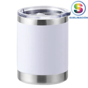 Acero inoxidable de 12 oz. tapa plástica, en color blanco y plata, para sublimación