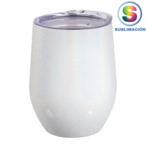 Acero inoxidable, capacidad 12 oz. tapa plástica, escarcha iridiscente en rosado y blanco, para sublimación