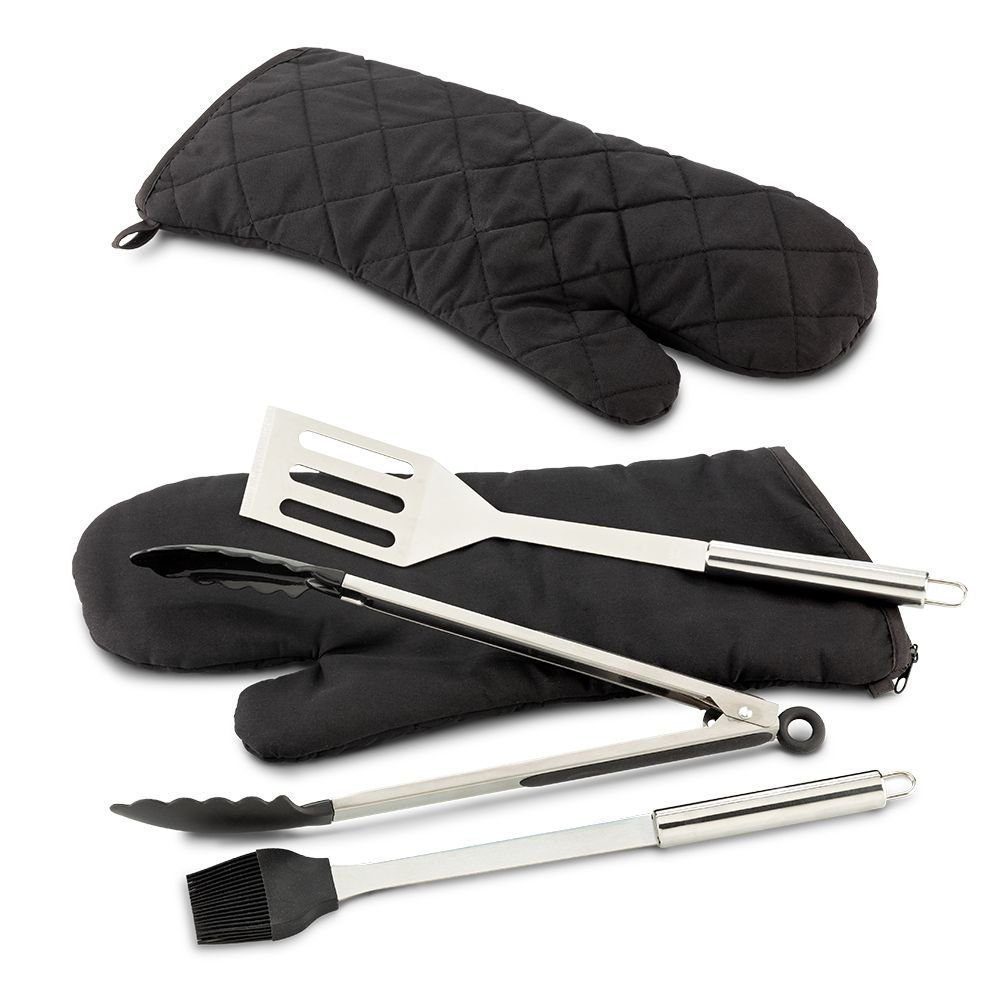 Paleta, trinchador y pinzas, manopla acolchada y frascos sal y pimienta, 90 x 65 cm, estuche 600D