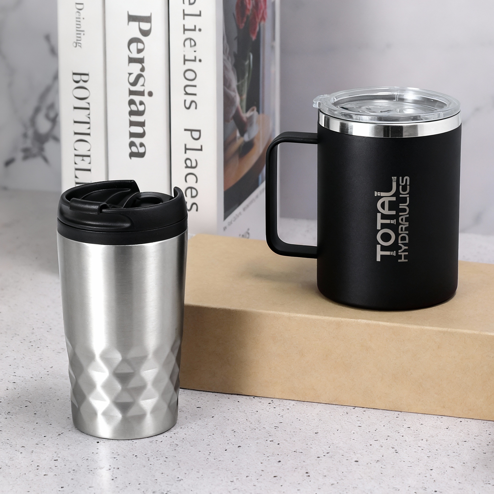 Vasos térmicos y botellas de acero inoxidable, lapiceros metálicos, llaveros de madera o acrílico, porta documentos en polipiel
