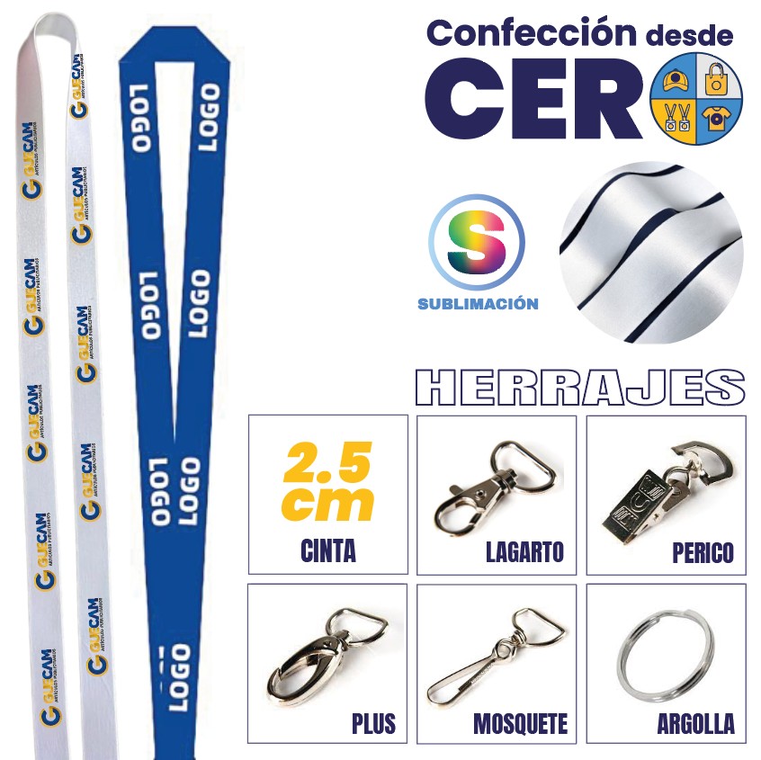 Cinta poliéster de 2.5 cm de ancho, distintas opciones de herrajes, en sublimación full color